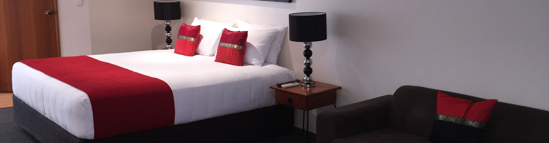 Our Executive King rooms have the added convenience of a private outdoor balcony area. These rooms contain king size luxurious orthopaedic beds for those with back issues or sleeping discomforts. All Rooms have split system air-conditioning, Tea & coffee facilities, micro-wave ovens, large screen TV, luxurious towels & linens.